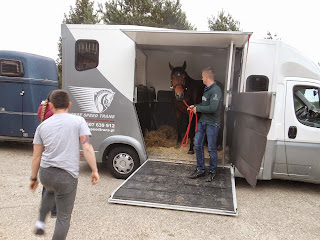 A Gringo? Wysiadł z koniowozu na lekko trzęsących się nogach, ale niespocony i spokojny. W boksie od razu zajął się sianem i zapoznawaniem z koleżanką stojącą obok. W ciągu dnia stoi w boksie na tyłach ujeżdżalni, najpierw stał obok młodego ogiera, a teraz stoi sam. Pamiętam, że w Polsce nie potrafił stać sam, rzucał się, gnoił cały boks, krzyczał. Pierwszego dnia było podobnie...ale tylko do południa, potem przyzwyczaił się i teraz nie ma z nim problemu. W ogóle w Polsce nasz koń był zazwyczaj demonizowany... że niewychowany, że boks gnoi, że awanturuje się. Wychodzi na to, że przysłali nam tutaj zupełnie innego konia. Czary jakieś, czy co?